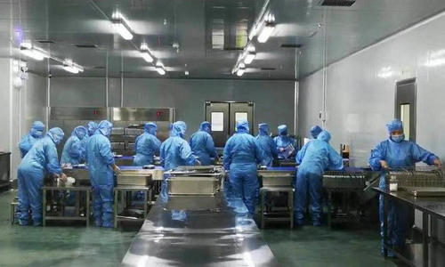 全厂采用(10-14℃)作业,无尘包装车间达到10万级的洁净度,全封闭式无尘分配包装,无菌操作,卫生、安全、健康,通过微波炉加热通道,保证饭菜到达客户受伤中心温度65°以上