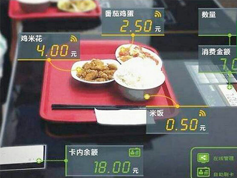 员工可以自由选择各种各样的菜式,没有服务员,使用空间变得宽敞起来。夹完菜便能在旁边的显示器中看到食物的重量、价格,点完后系统将在随后15分钟内自动付款,整个